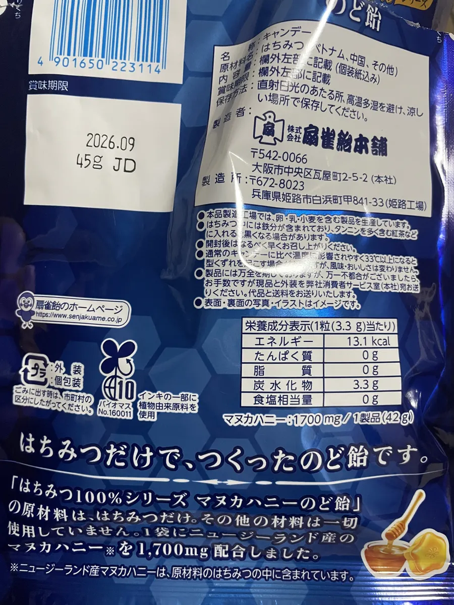 投稿を表示私も声がかすれ、エヘン虫でもいるのか❓の時にマヌカハニー🍯ののど飴を買ったことがあります😊