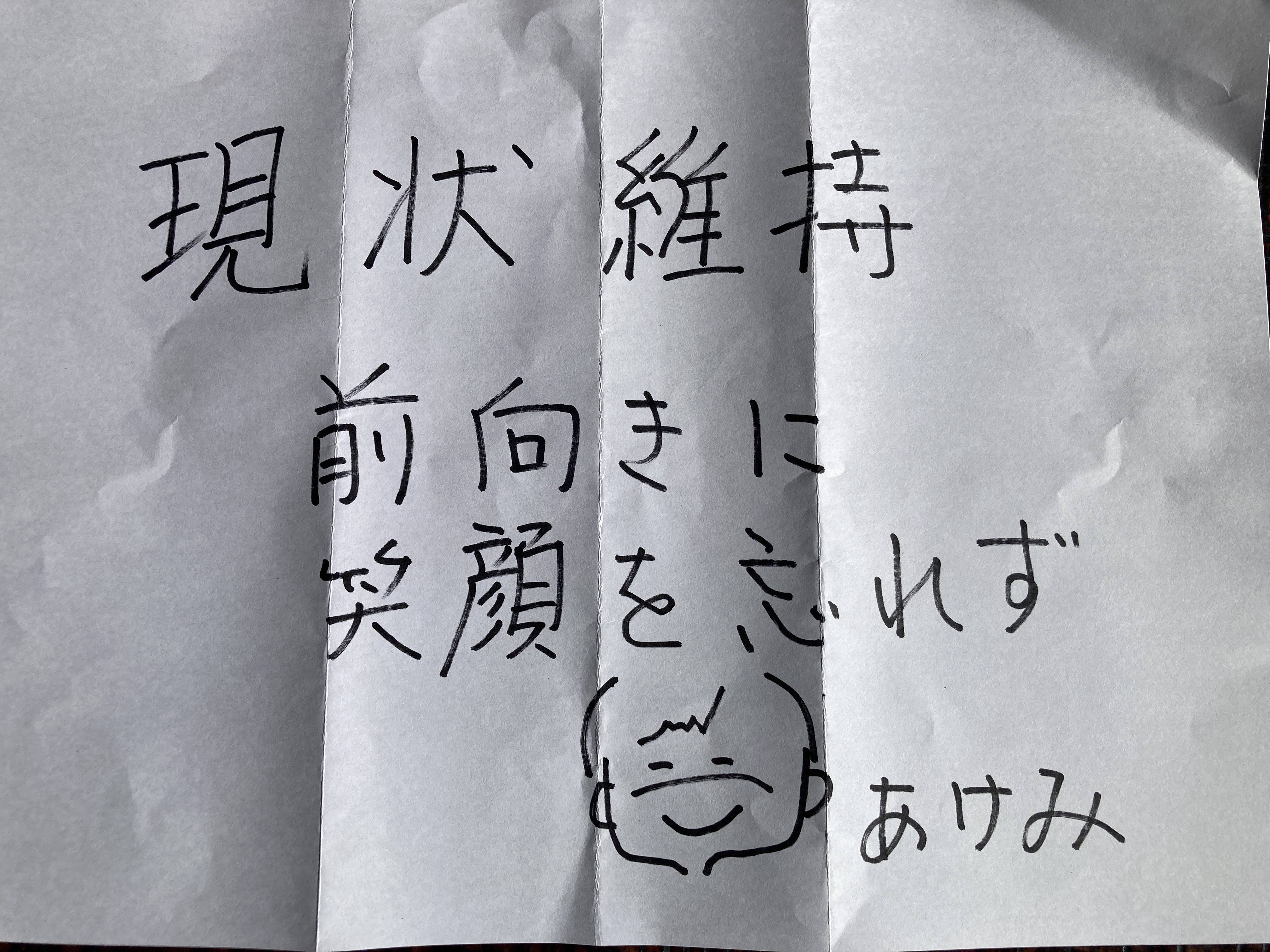 現状維持、前向き、笑顔