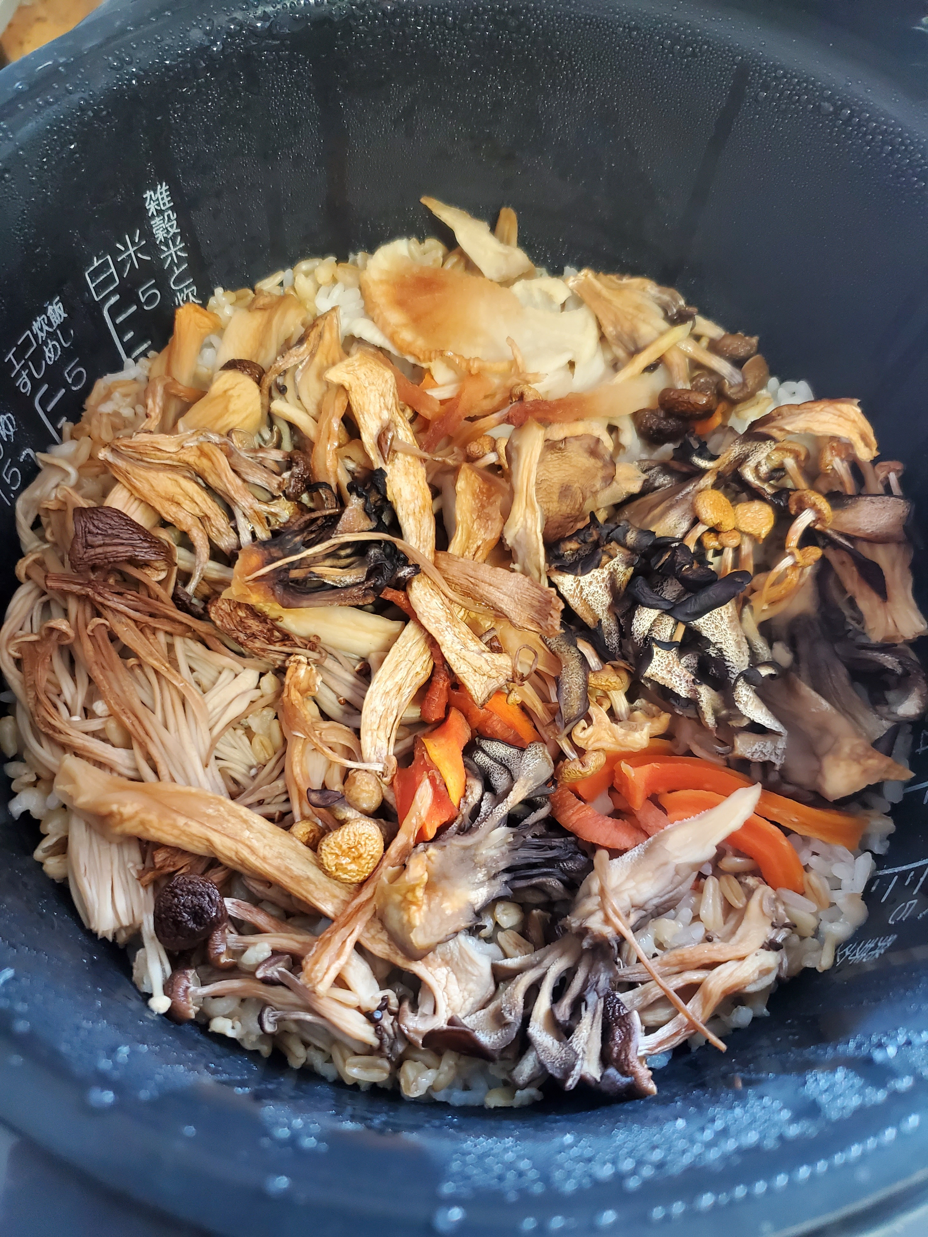 投稿を表示干しきのこ🍄🟫たっぷりの炊き込みご飯、栄養が丸ごと摂れていいです😋
