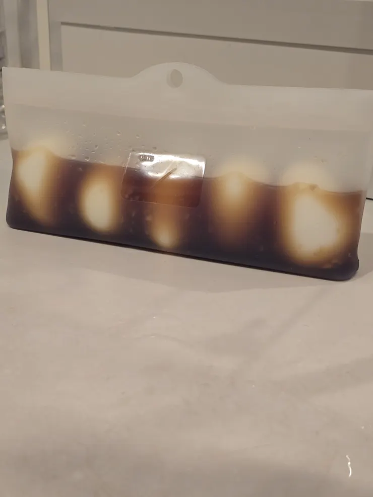 写真はのスリーコインズのシリコンフードパックにツルピカ卵にめんつゆに漬けて味たまにしました。
