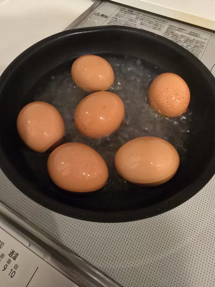 ・沸騰したら卵を入れて蓋をして4分→火を消してそのまま4分放置。