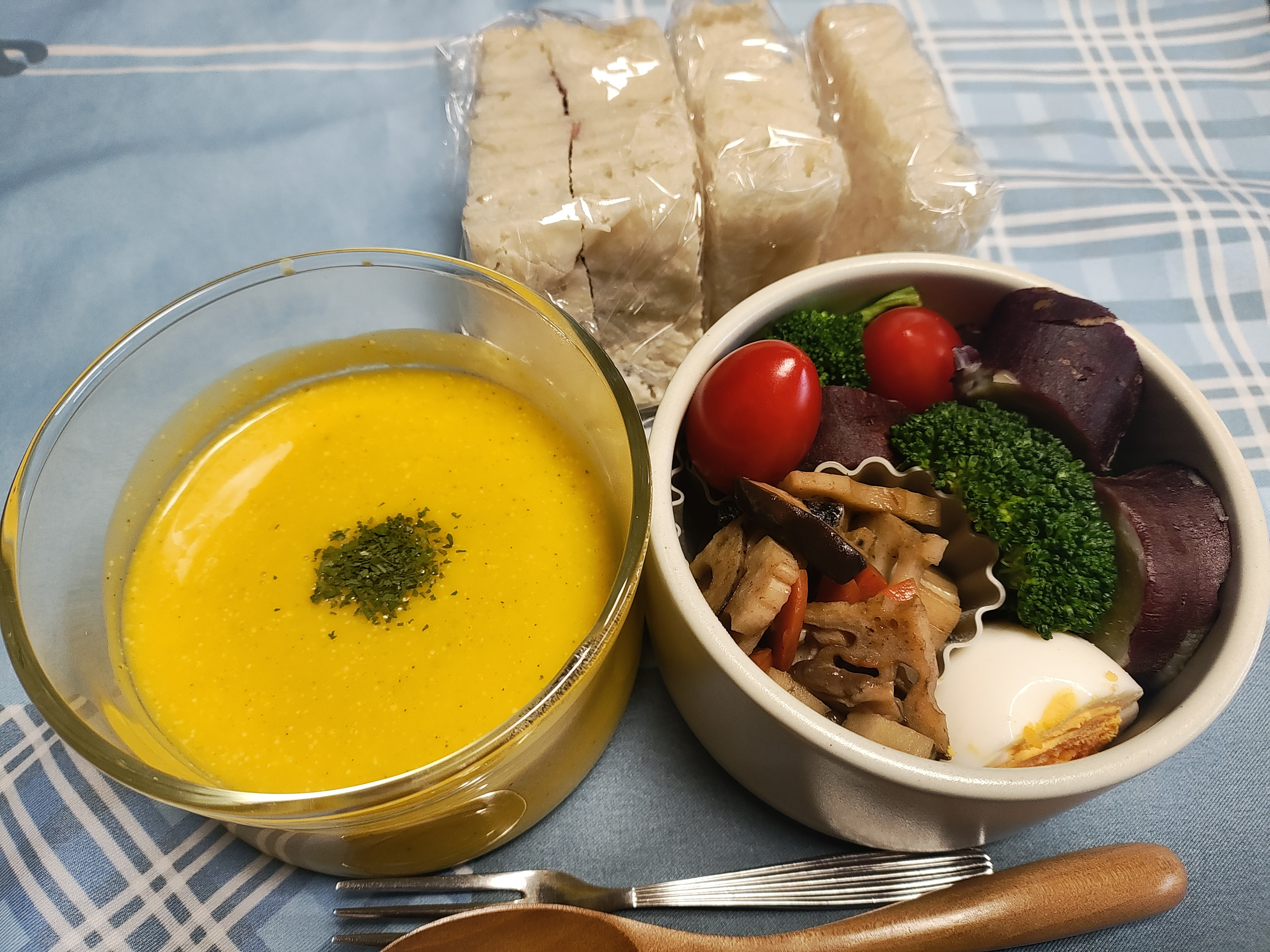 ゆずだいこん、みかん🍊、ぎんなん、きんかん、にんじん🥕、カボチャ(なんきん)、パン、せんべい、ベーコン🥓、「ん」がつくいい物悪い物を私も食べました😋
