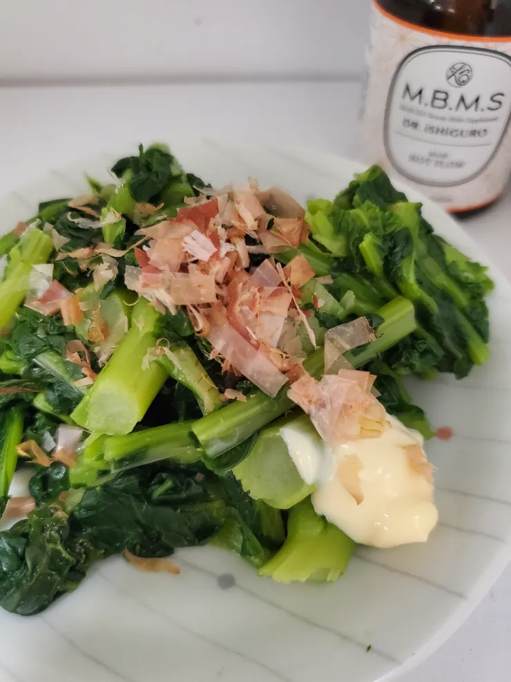 茹でた『のらぼう菜』 かつおぶしマヨネーズ