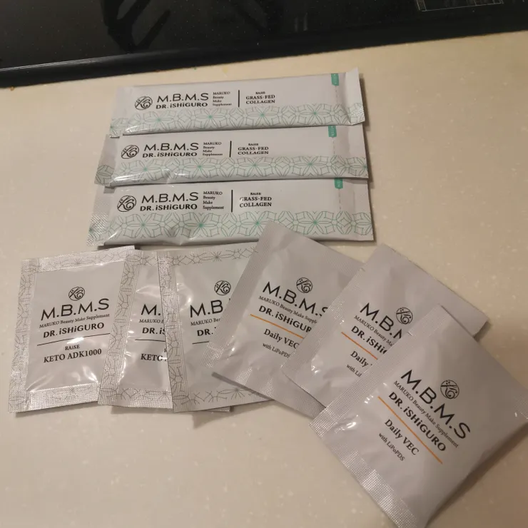 あと、お恥ずかしながら先生のお話の前に事例発表として私のLiSAの結果の変化などお話させて頂きまして、プレゼントでDailyVECとKETO ADK、グラスフェッドコラーゲンのパックを頂きました🥰
