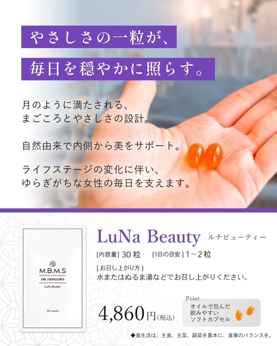 それが、石黒先生が「女性のゆらぎに寄り添いたい」という一心で設計してくださった「LuNa Beauty(ルナビューティ)」