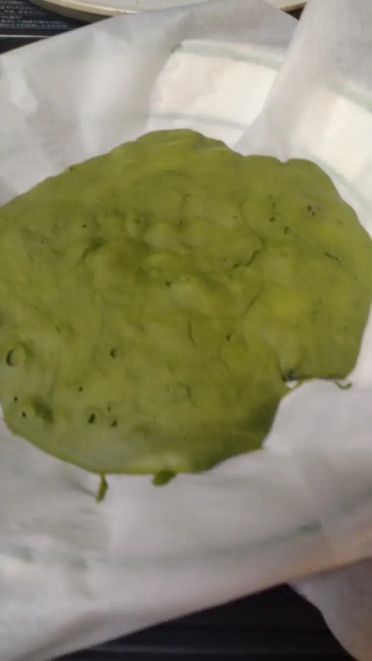 ベーキングパウダーなしなので、膨らんでいません。入れるとたぶん膨らみます。