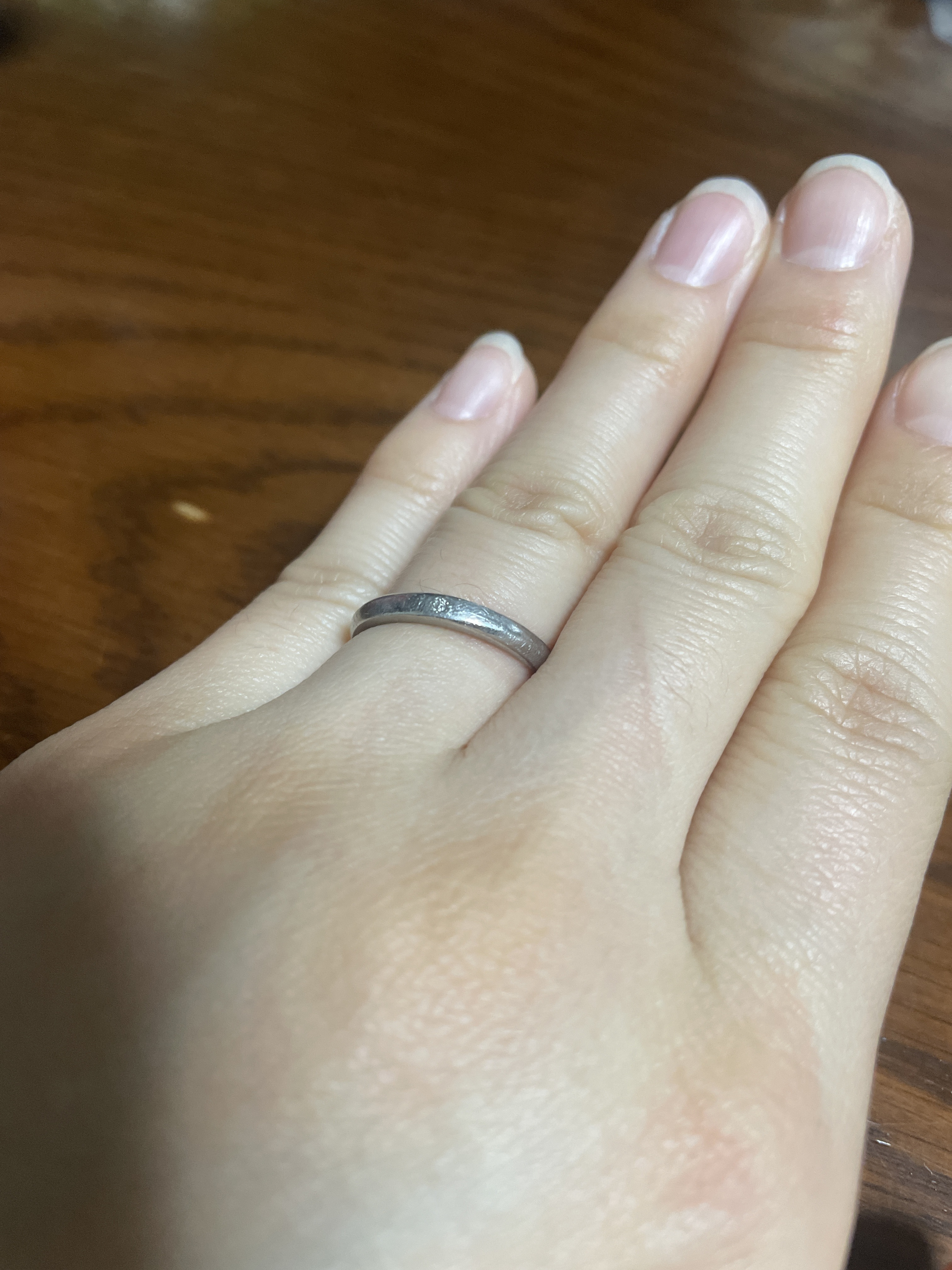 昔のことですが、妊娠中に引っ越しがあり、荷物を持ったら左手の薬指が内出血してしまい、結婚指輪外しました😅