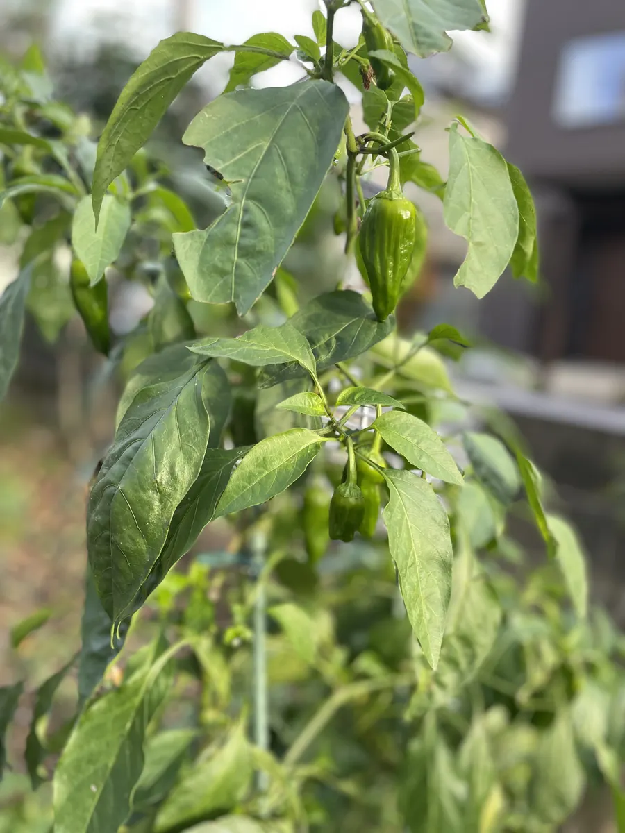 この写真は、寒くなってきた新潟でも実を付け続ける、うちの庭のピーマン🫑です👆