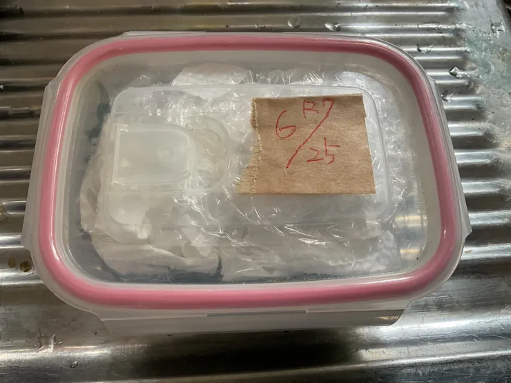 ラップを引きキッチンペーパーで軽く重しして蓋をして2〜3週間冷蔵庫で保管して色が変わったら