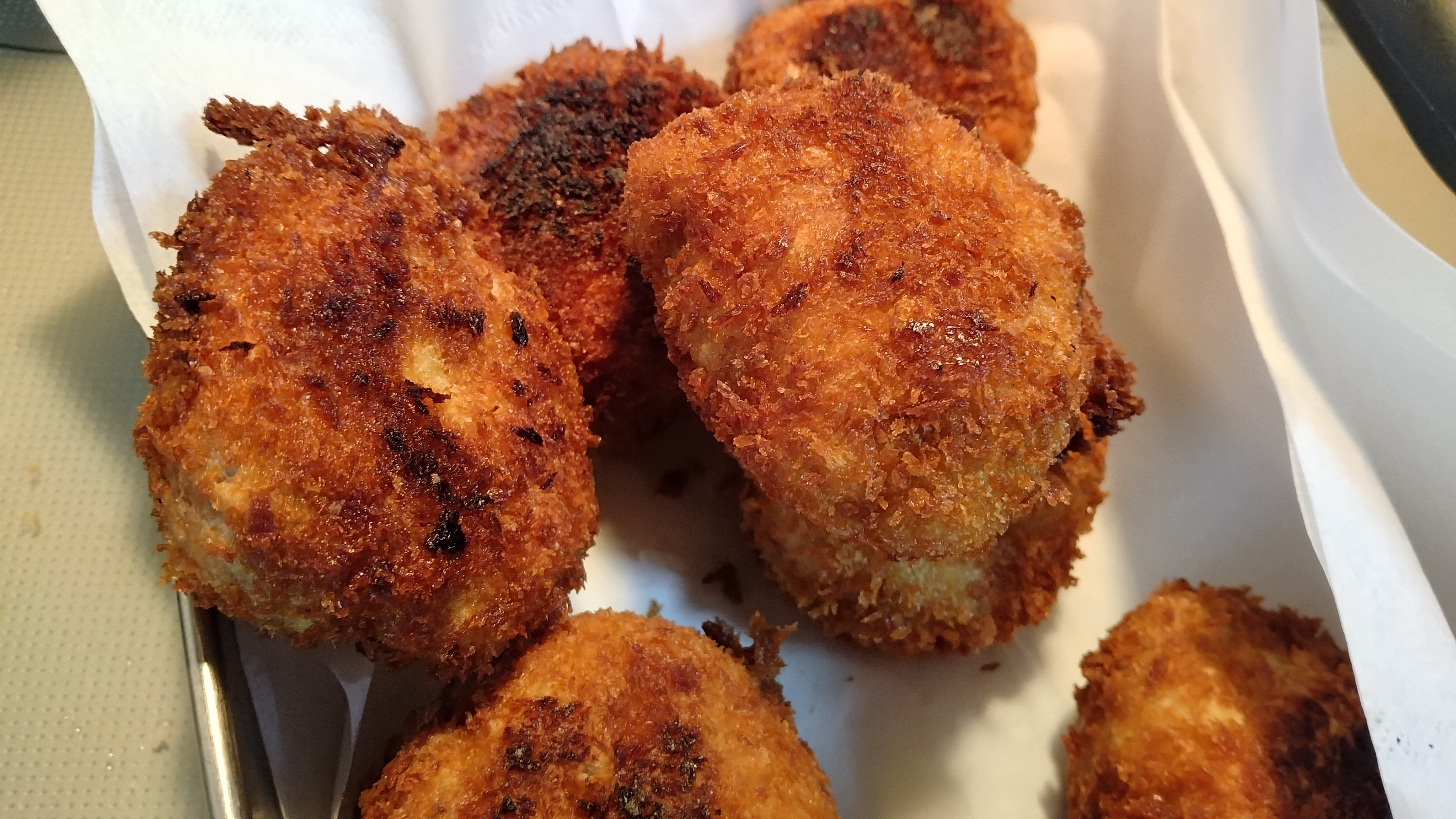 ダチョウの卵かと思うくらい大きな里芋の親芋をいただいて、美味しく食べたかったので、里芋のコロッケになりました。