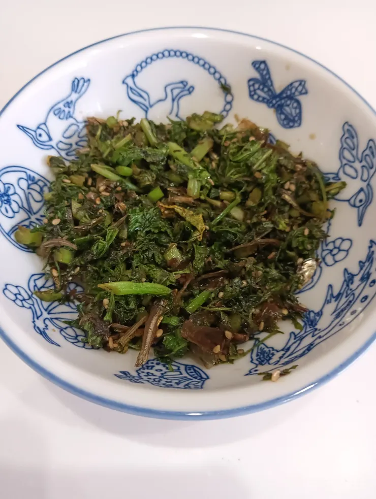 投稿を表示私も炒ろうと思いましたが、先程明日用にかぶの葉部を茹でて、塩昆布といわし節とごま油で和えました😄