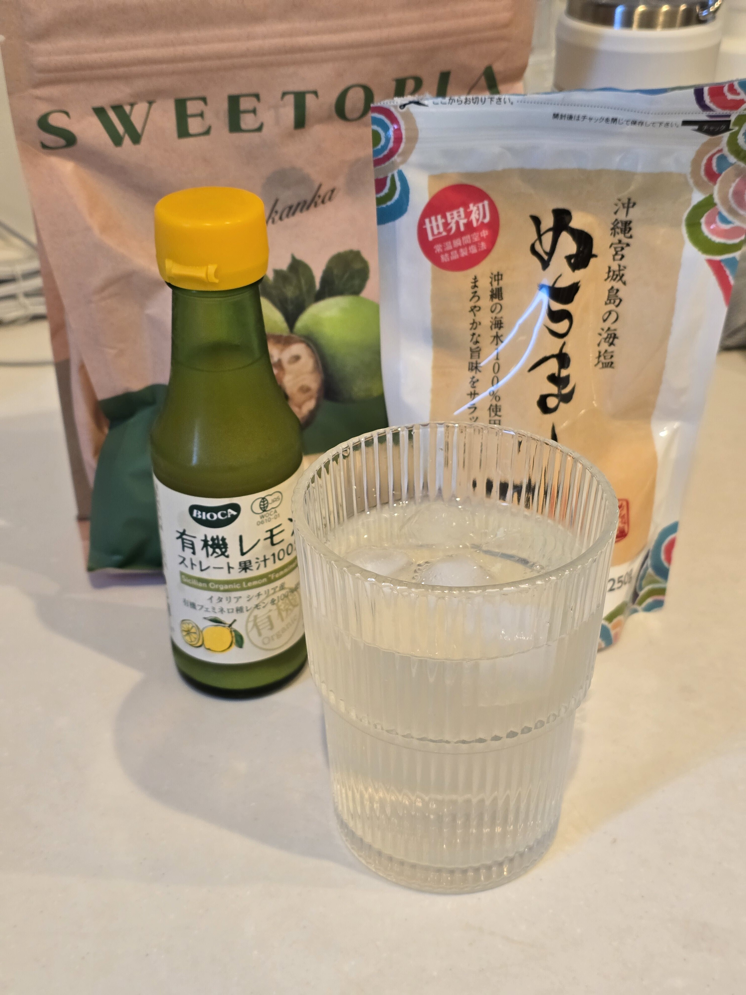 投稿を表示私は脱水症状ないですがお風呂上がりにぬちまーす・オーガニック🍋をミネラルリッチで割って飲むのを日課にしています。