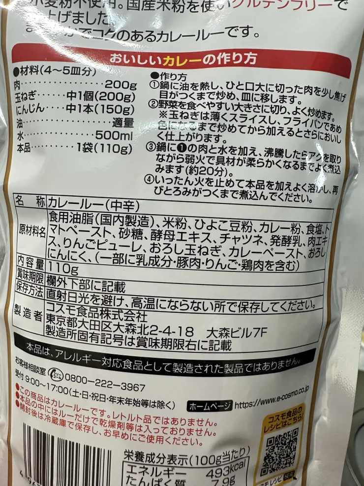 市販のカレールーって小麦と乳化剤入っているので🙅🏼♀️我が家はスパイスカレーにしてますが「普通のカレーも食べたいなぁ」と言われるので見つけました‼︎