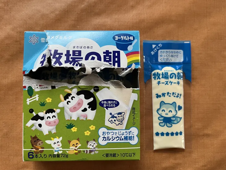 ⭐︎牧場の朝のチーズケーキの方は、写真を撮る前にパッケージが破られていました。