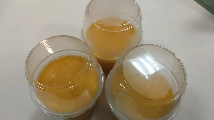 鍋に水30cc×5、ゼラチン5g×5をふやかす。プリン液体を鍋に入れて、火にかけゼラチンを溶かす。くり抜いたかぼちゃに再投入冷蔵庫で冷やす。入らない分は百均のプリンカップに。レシピは卵黄のみや濾すとあったが白身がもったいないので、全卵使用。砂糖は半量に、濾さずにそのまま(笑)
