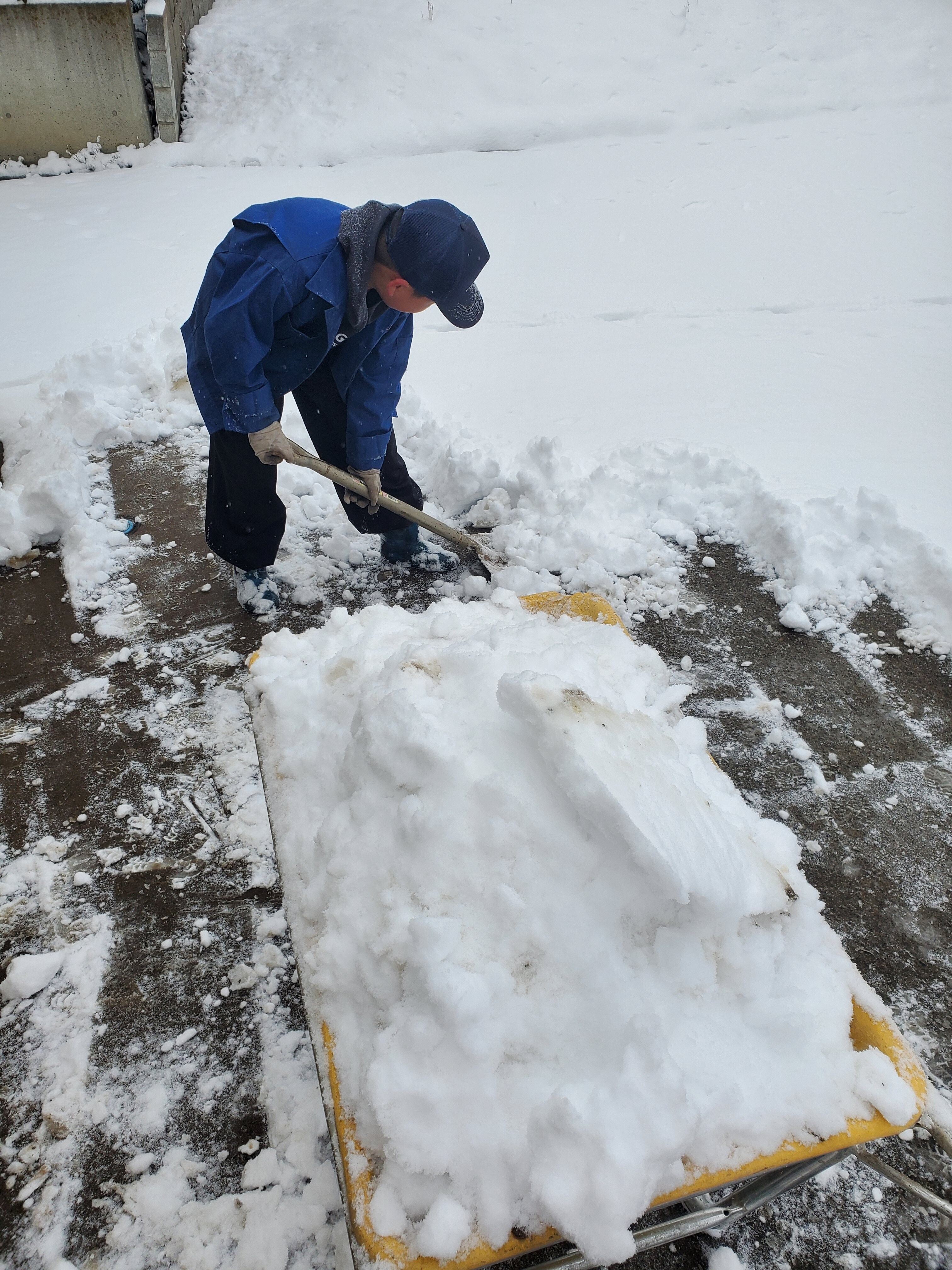 ほっぺを赤くして朝早くから雪かきをしてくれている👦息子⛄