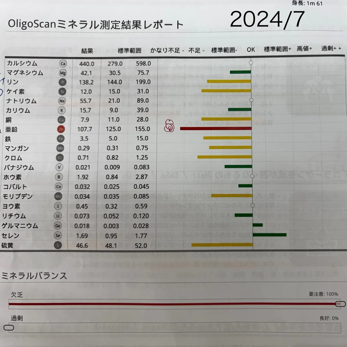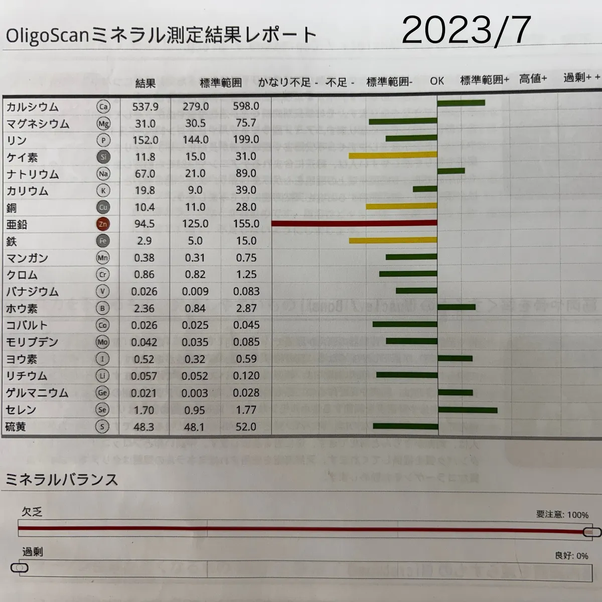 スタートした時から亜鉛やミネラル、有害金属は真っ赤でしたが、少しずつ改善してきた結果2023年はこのような結果でした。