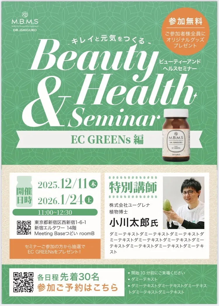 そして、先日参加した「Beauty & Healthセミナー」で小川博士のお話を聞いて、今年は〝EC GREENsの倍飲み〟も試してみようと思います。