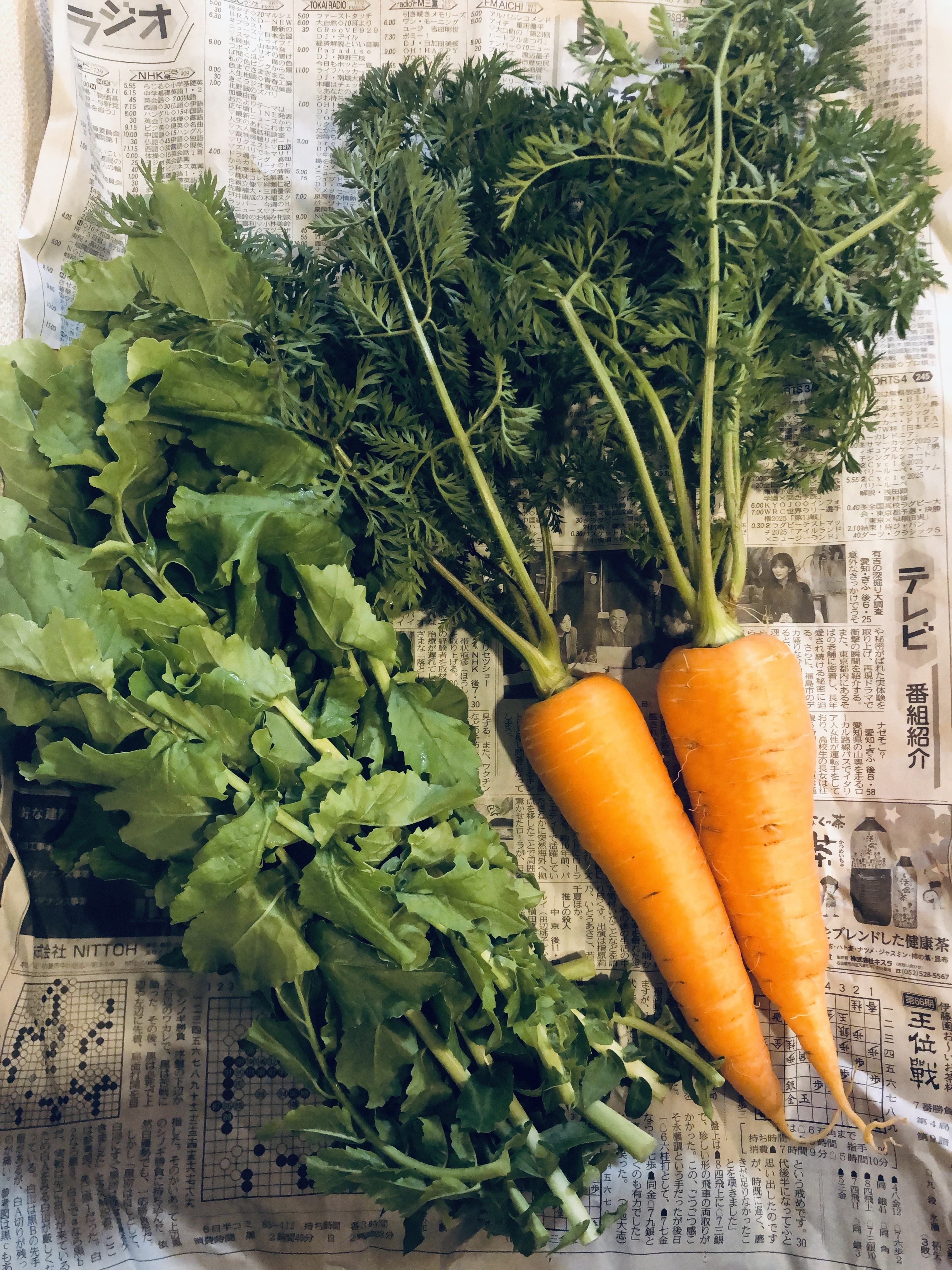 「にんじんの葉っぱっておいしいらしいよ〜。大根の葉っぱもおいしいよね〜💕」と言いながらお買い物☀️