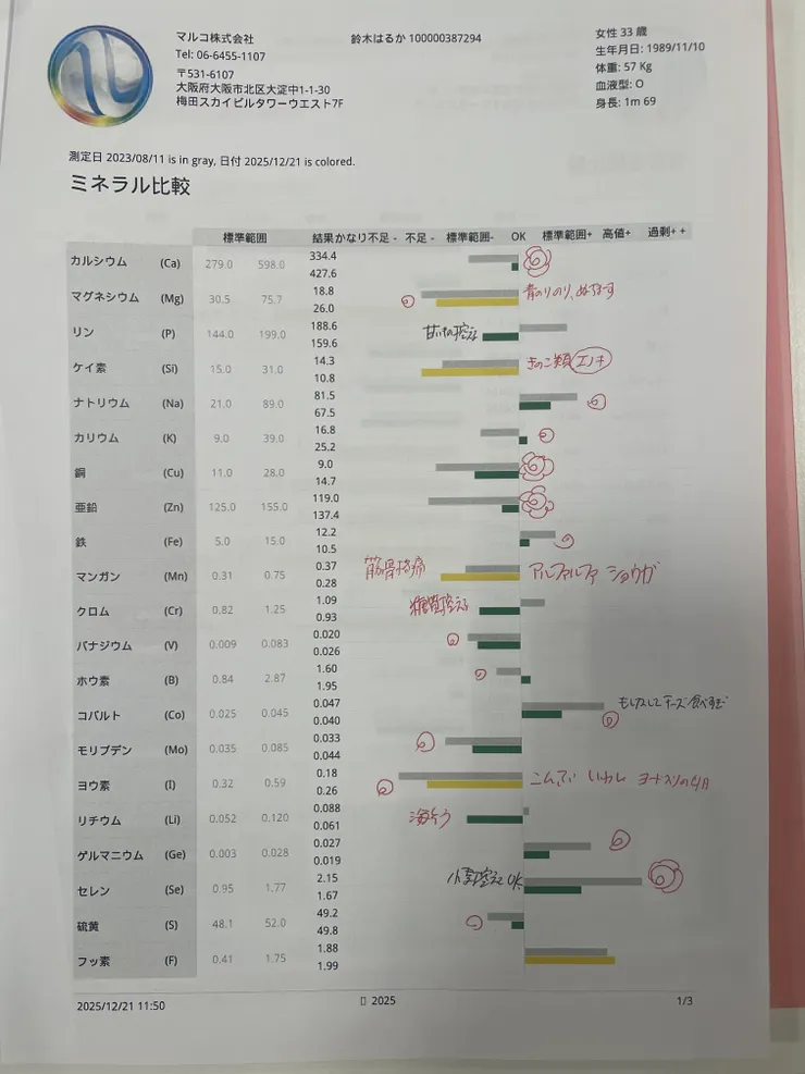 楳沢ヘルスコーチャーに見ていただいたんですが、2年前より結果が良くなってました☺️✨