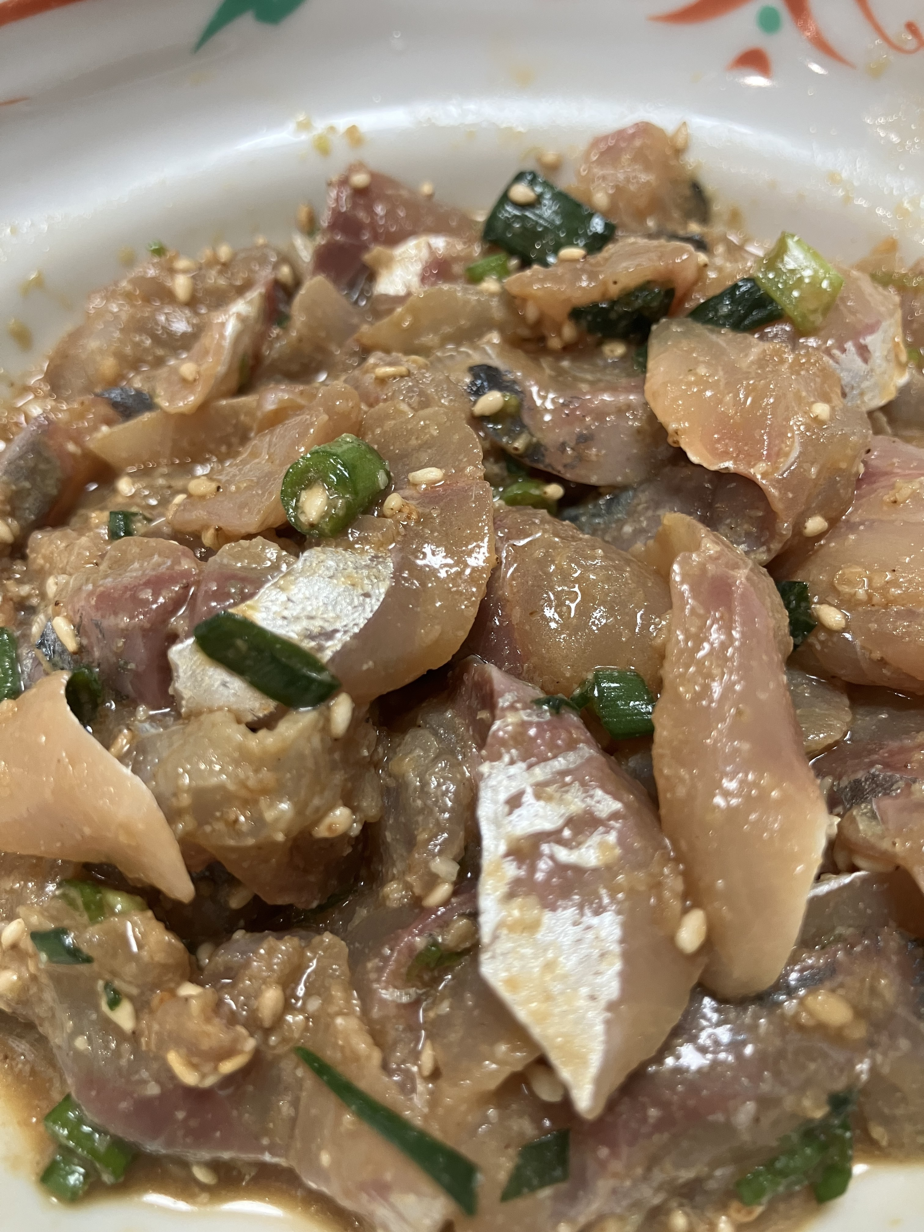 投稿を表示鯵好き~😆良い油、ミネラル✨混ぜるだけ~簡単~美味しそう~🐟️橙しぼって~🍊あ~食べたい~🤤