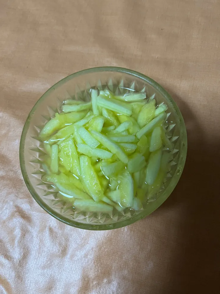 小さな種がいっぱいですが、実は一口大に切り、皮が薄くて白い部分も少なかったですが、白い部分は酢の物にしました😄