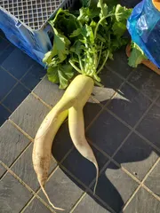 セクシーな大根 🍴食べたもの🍴ふろふき大根 柚子味噌■□■ちょっと意識したこと■□■親戚が家庭菜園で作った大根をお米を入れて茹でました。手作り味噌と沖縄県産さとうきび糖とすりおろした柚子と汁とミネラルリッチ水を少し入れて火にかけました。母に「脚みたいな大根貰ったよ。」と言わたので、見たら、セクシーな大根でした~😆採