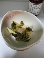 🍴食べたもの🍴うどの酢味噌和え(うど、味噌、おいしい酢)■□■ちょっと意識したこと■□■家の前の親戚の家の畑?の『うど』を生で。手作り味噌。『うど』=天ぷら‼️と思っていたら、生でも食べられる😁と、母から聞いて、さっき、知りました(笑)茎は、しゃきしゃき、葉は…しっとり?やわらかい😄