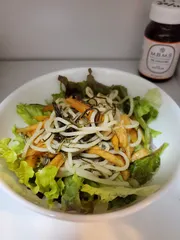 🍴食べたもの🍴白菜 りんご すりごま サニーレタス マヨネーズ 玄米パスタ■□■ちょっと意識したこと■□■りんごは皮ごと。近所の人から戴いたサニーレタスと白菜。平飼いたまごのマヨネーズ。小麦粉不使用の玄米のパスタ。サラダみたいで美味しかった~😁
