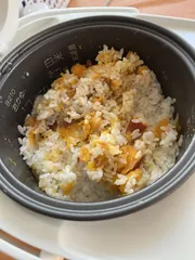 オレンジスウィート🧡🍠で、さつまいもご飯にしました🍚 混ぜてしまったあとですが、火を入れるとオレンジ色が濃くなり、かぼちゃ🎃みたいですね😄 甘さはそれほどでもなく🤔ぬちまーすを入れて炊きましたが、もう少し入れても良かったかな〜でした😅 黒胡麻振って。グラスフェッドバター🧈を入れて