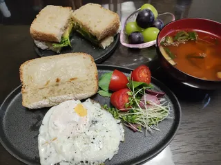 朝ごはん またまた100%米粉パンを作りました!パンにおみそ汁?パンだけどお米だし🙄 アレンジしないほうがいいのはわかっていたけど、どうしても手を加えたくて分量を変えたら、膨らみが悪い。キメが粗い。モチッとしすぎ。 でも美味しいからいっか❤️