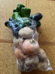 野菜の詰め放題🍆🫑🥔🧅 会員になっているところのイベントで、野菜の詰め放題 ひと袋200円。ということで行って来ました😄無料の時は、出遅れて参加出来なかったので、少し早めに行きましたが、既に20.人以上の人が並んでいました💦 無農薬野菜ではないかと思いますが、詰め放題で頭を使うのも楽しいし良いかと思い、丸いものか
