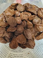 梅干し🟠 らっきょう酢に浸けてあった南高梅🟠土用の丑の日を過ぎた頃、三日くらい晴れが続く時、三日三晩干す…そろそろ干さなきゃ〰️晴れ☀️晴れ☀️晴れ☀️なのに、2ヶ月以上放置してしまった😅やっと昨日、干しました☀️形が崩れてしまったのを味見…らっきょう酢の味の梅😋甘酸っぱい😆美味しい😍昔、祖母が作った梅干しの