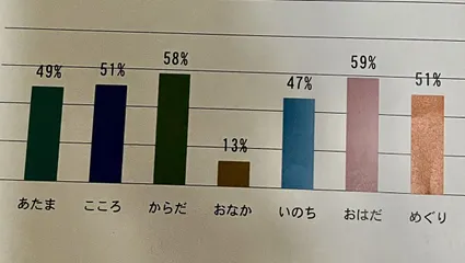 ALL50%以下にしたいな〜 2021.03月初Lisa (当時61歳)全体的には、低めらしいですが…・気になったリスク こころ・おはだ:同じ67% めぐり:ドクターズアドバイスでは最初 に出ていました・購入したM.B.M.Sサプリ オリゴスキャンで亜鉛不足だったので、 ・ジンク ビューティー2022.03〜定期中
