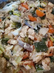 🍴食べたもの🍴おから煮(おから、ネギ、人参、こんにゃく、えのき、油あげ、ちくわ)米油、醤油、きび砂糖、ホワイトリカー■□■ちょっと意識したこと■□■国産大豆のおから。ネギと人参は、知人からいただいたもの。具を多めに、薄味にしました。美味しすぎる~😋近所のおばあちゃんにもお裾分け😊
