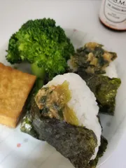 🍴食べたもの🍴玉ねぎの葉っぱ味噌おにぎり🍙ブロッコリー、厚揚げ■□■ちょっと意識したこと■□■父が出荷する玉ねぎの棄ててしまう葉の部分を使ったこと。手作りの麦味噌有明海産 焼きのり■□■材料■□■玉ねぎの葉、麦味噌、きび砂糖、ホワイトリカー、米油。おにぎり。■□■作り方■□◼️玉ねぎの葉を米油で炒め